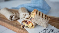 Place 60 ml (1/4 cup) scrambled eggs in the center of each tortilla.