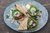 Divide the composition into 6 equal parts and form uniform patties and spread them on a baking sheet lined with parchment paper. With the tip of the thumb, press lightly to form a decently wide shallow in the middle. Refrigerate for at least 1 hour.