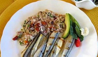 - Blanch the shallot rings, then grill the smelts for 5 minutes per side or until golden to taste.