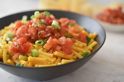 Incorporer au macaroni, ainsi que la salsa et les oignons verts. Égaliser le dessus. Couvrir et cuire au centre du four de 30 à 35 minutes ou jusqu'à ce que la préparation bouillonne une dizaine de minutes avant la fin de la cuisson, découvrir et parsemer de chapelure.